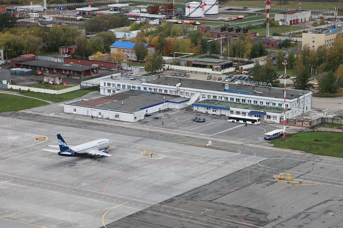 Perm International Airport (Russian: Международный аэропорт Пермь) (IATA: PEE , ICAO: USPP ) is an international airport located at Bolshoye Savino, 16 kilometres (9.9 mi) southwest of the city of Perm, Russia. It is the only airport in Perm Krai with scheduled commercial flights, and serves as Perm's main civilian airport, with bus and minibus services operating during the daytime to the city's main bus terminus.